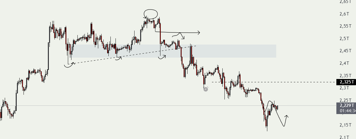TOTAL : Toplam Crypto Market içinde ki parayı ifade eden grafik teknik olarak incelediğimizde ise önemli bir direnç seviyesi olan 2.548 seviyesine yaklaştığını görüyoruz.(DESTEK: 1.85 -1.95/DİRENÇ: 2.5 -2.8)